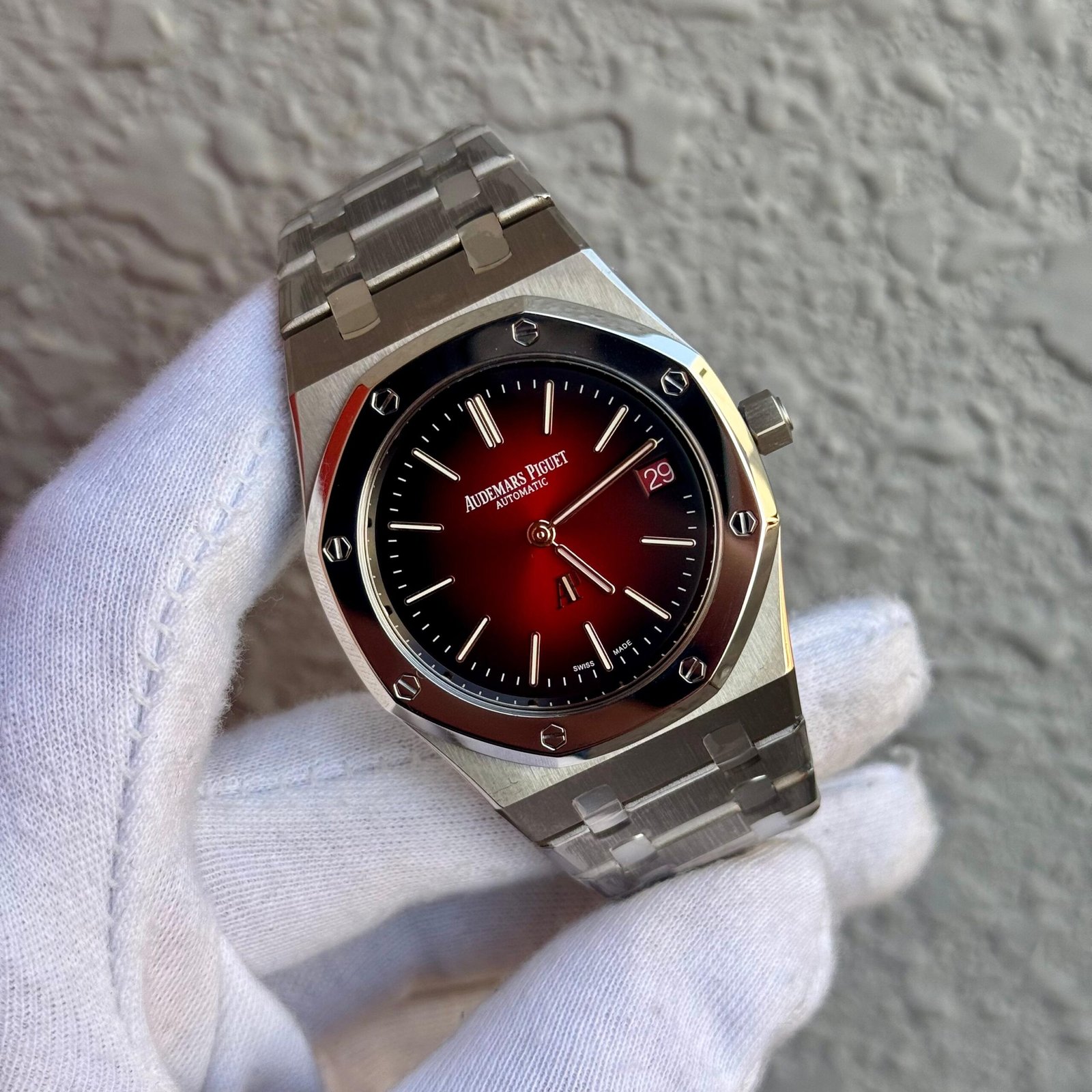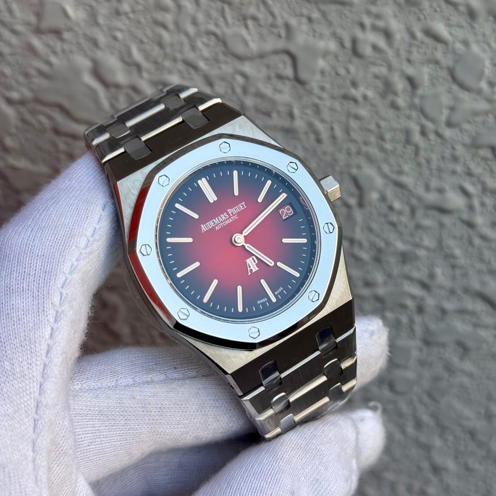 Behold the Audemars Piguet Royal Oak “Jumbo” Extra-Thin – not merely a watch, but a legend forged in steel. Born from the visionary mind of Gérald Genta, its iconic octagonal bezel, secured by eight hexagonal white gold screws, sits upon a monobloc case that revolutionized haute horlogerie. The masterpiece is finished with the inimitable “Tapisserie” dial, a mesmerizing guilloché pattern that plays with light, and features the iconic integrated bracelet, a marvel of ergonomics and craftsmanship where each link is hand-finished to a peerless, fluid sheen. Within this sleek profile beats the ultra-thin, self-winding manufacture Calibre 2121, a triumph of micromechanical artistry. This is the definitive luxury sports watch, a symbol of disruptive elegance and a testament to the audacious spirit of Audemars Piguet. It is a statement of uncompromising quality for those who defy convention.