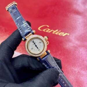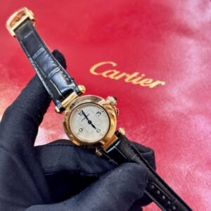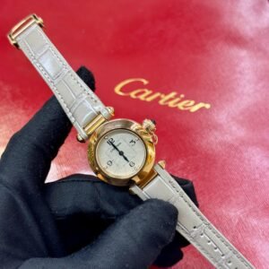 At the heart of the Pasha’s allure is its unique and balanced aesthetic. The bold, round case is a canvas of sophistication, often complemented by a classic “grid” motif that can be effortlessly removed. The most defining feature is the revolutionary screw-down crown cap, elegantly chained to the case, protecting the precision within while creating an instantly recognizable silhouette. It is a design that commands respect in any setting, from the boardroom to a formal gala.
