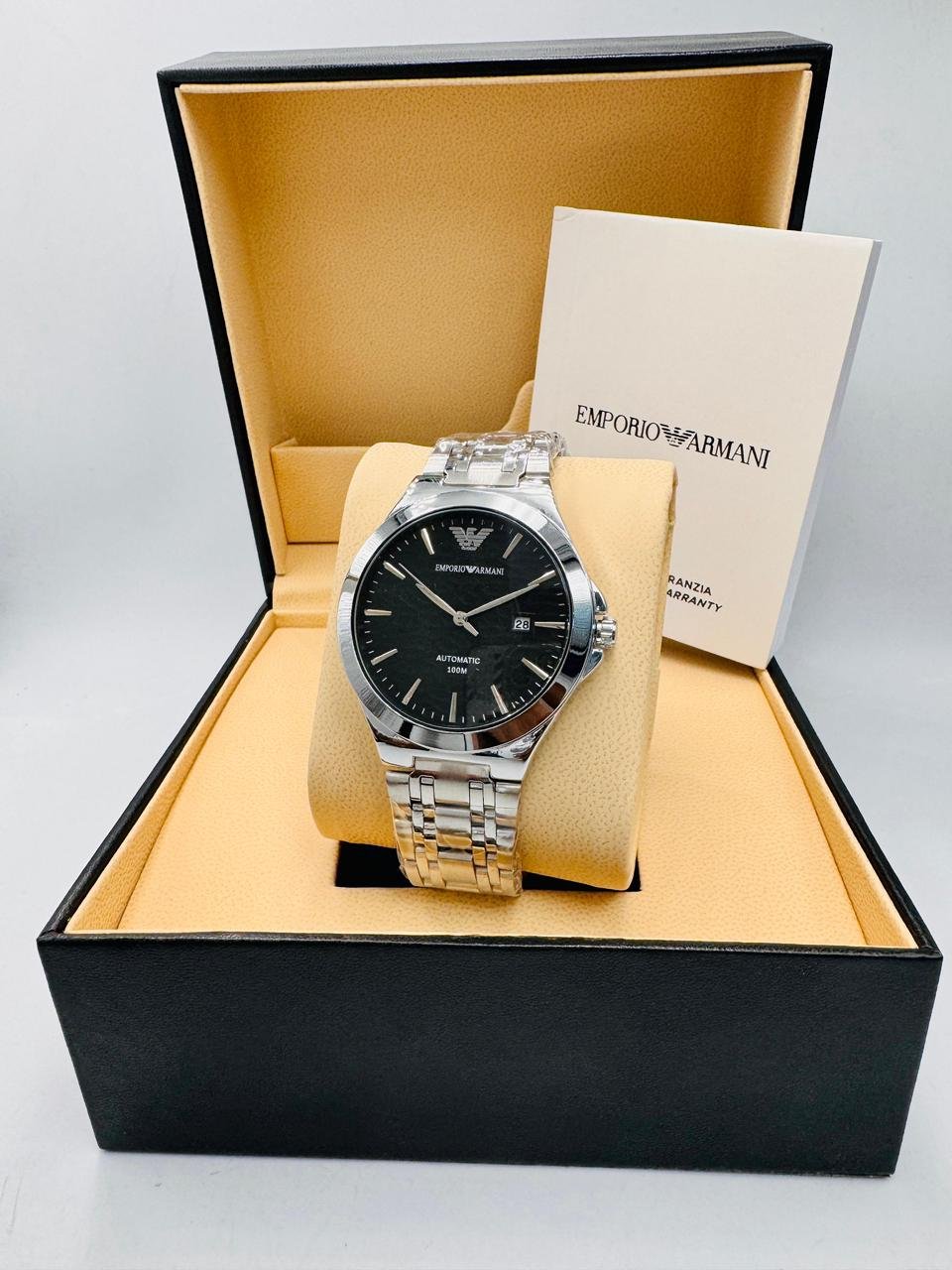 Embrace the pinnacle of Italian craftsmanship and contemporary design with the Emporio Armani Chronograph Watch . This watch is more than an instrument for telling time; it is a statement of sophisticated engineering and refined aesthetic sensibility. Meticulously constructed with a high-quality stainless steel case and bracelet, it exudes a substantial, luxurious feel on the wrist. The striking dial, available in classic tones, features detailed chronograph sub-dials, applied markers, and the iconic Emporio Armani eagle logo, ensuring perfect legibility and instant brand recognition. Protected by a scratch-resistant sapphire crystal, this watch is built for both elegance and endurance. Powered by precise quartz movement, it guarantees reliable accuracy. Whether for a crucial business meeting or a formal evening event, the Super Master is the definitive accessory for the modern individual who demands excellence in both style and performance.