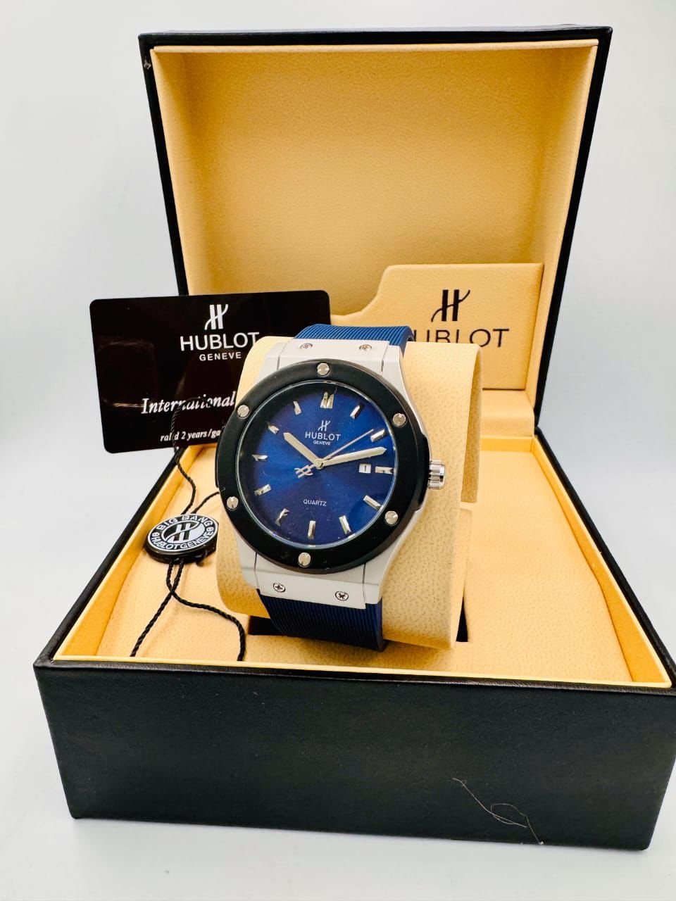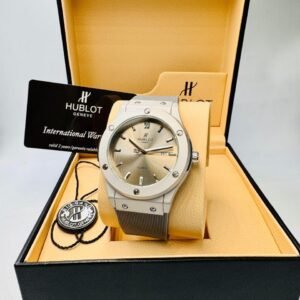 Our master craftsmen have deconstructed the iconic Classic Fusion, focusing on the core elements that define its luxury: the precise weight and cool touch of the solid stainless steel case, the perfect satin-finished and polished bevels, and the signature “H” screw-locked titanium bezel that sits flawlessly flush. The dial is a masterpiece of clarity, featuring applied indices with genuine Swiss lume, a date window with correct magnification, and the distinctive Hublot typography.