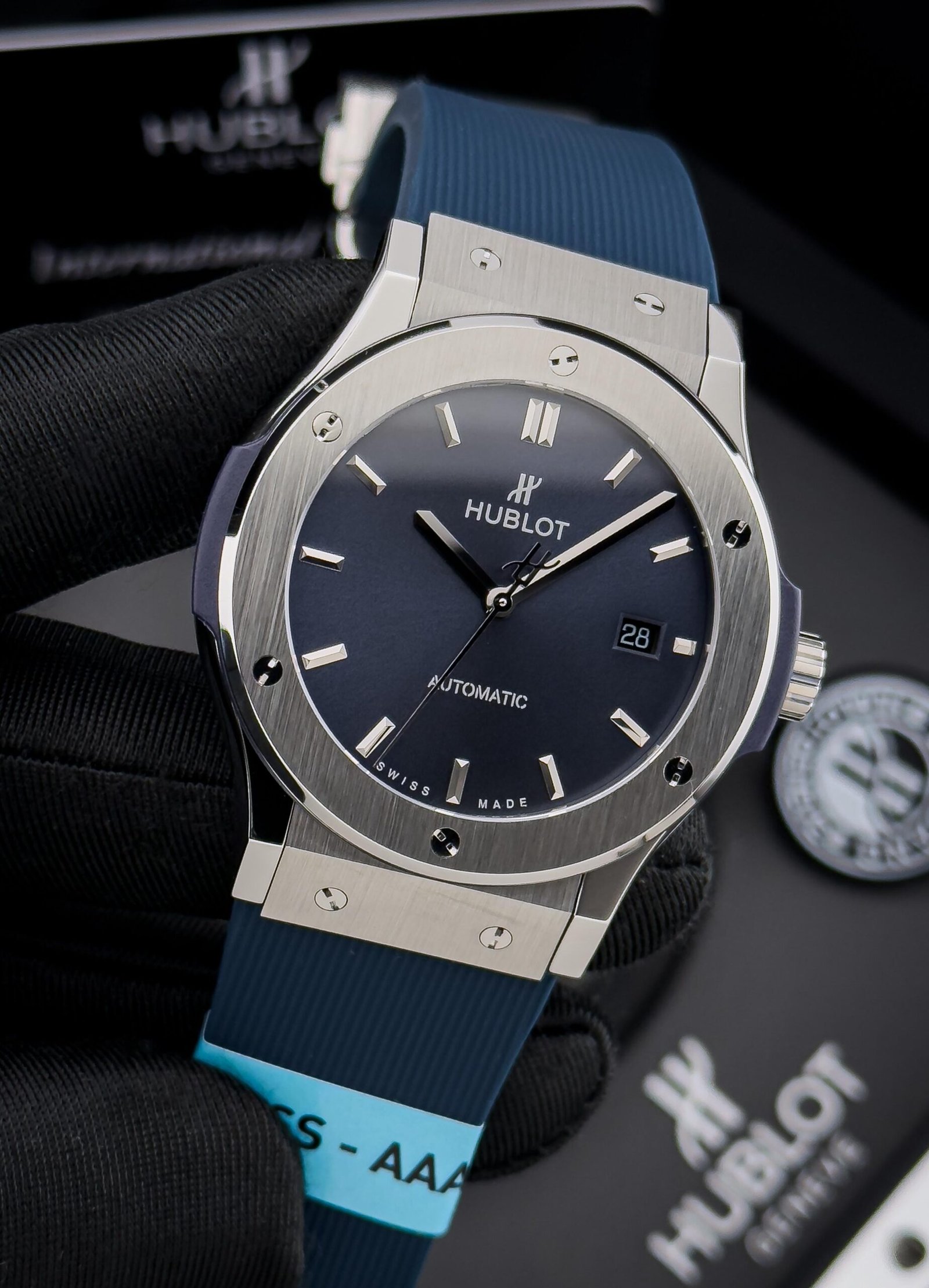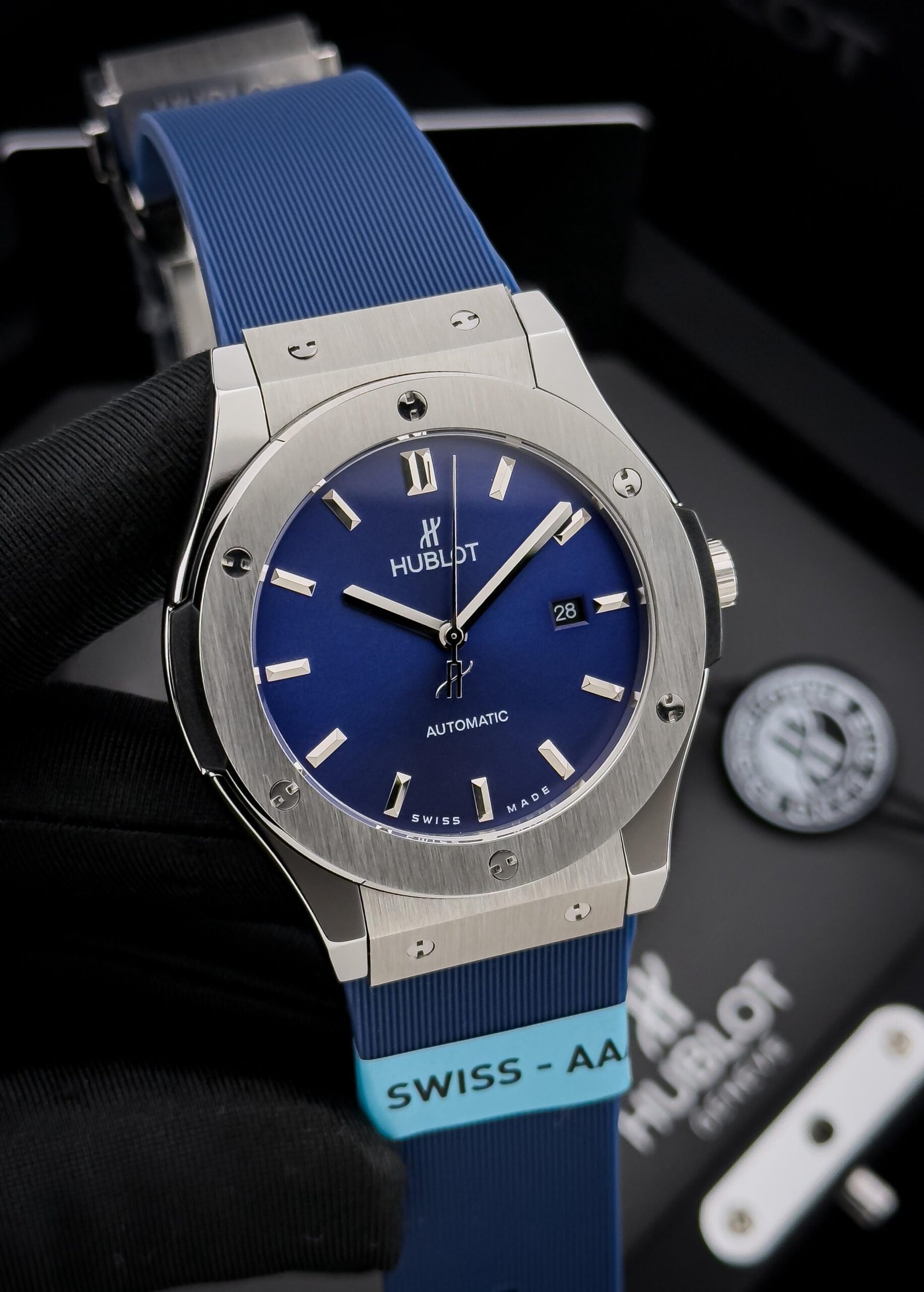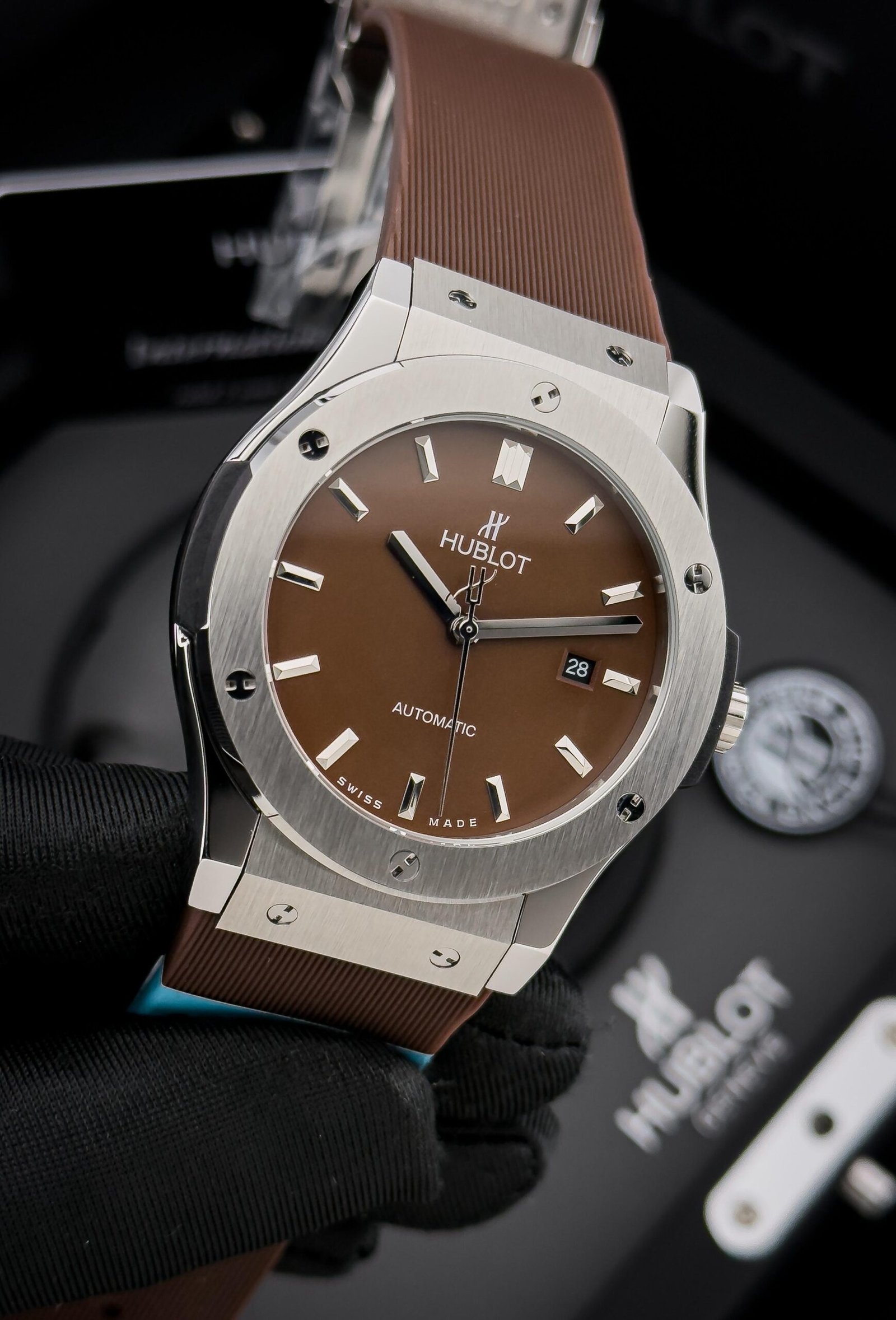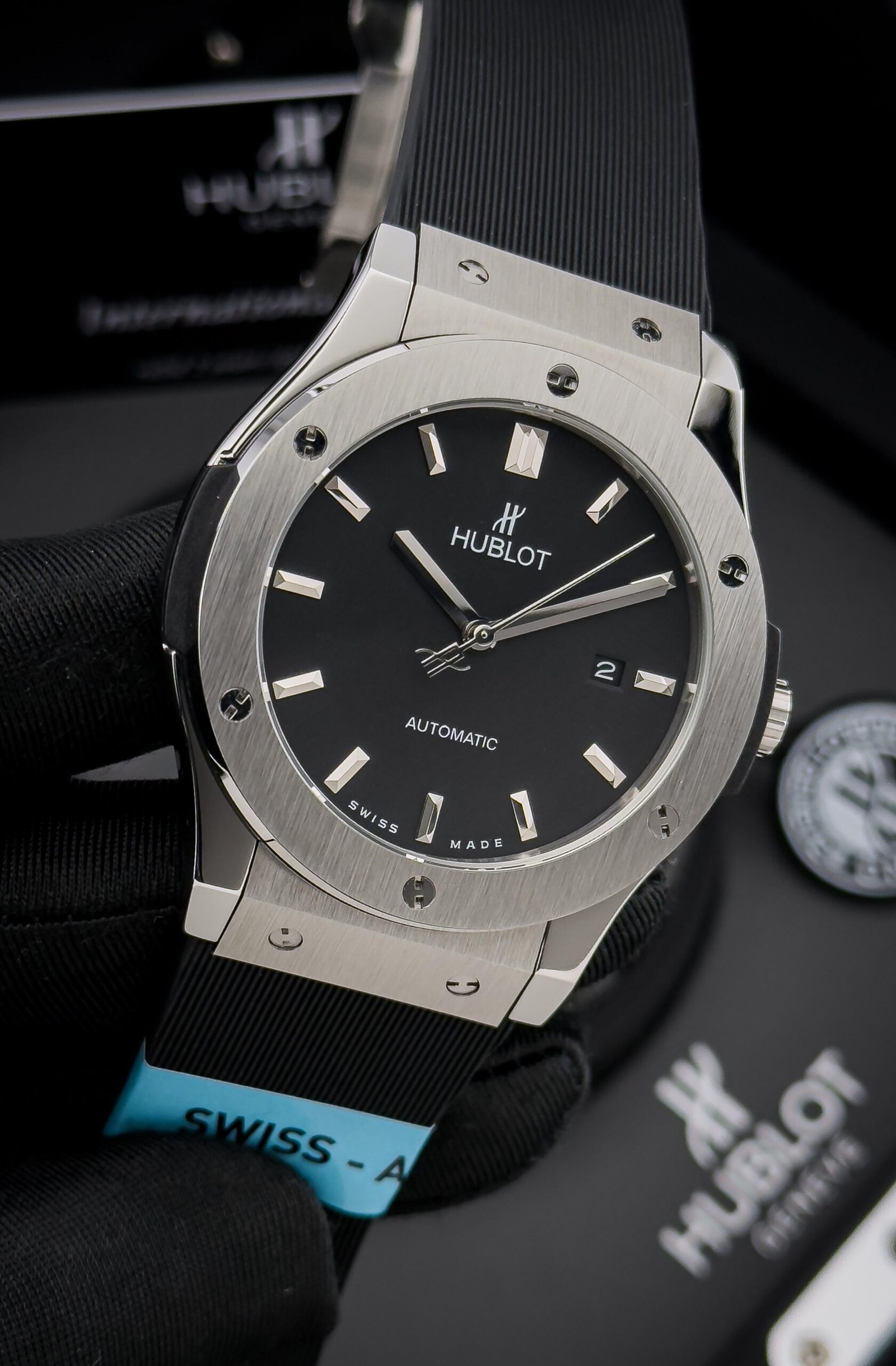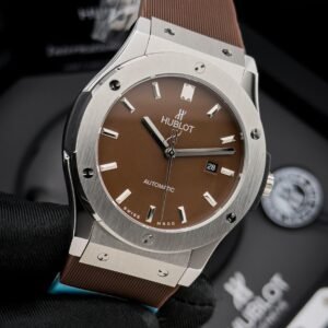 Embody the essence of modern horology with the HUBLOT Classic Fusion. This timepiece is a masterful synthesis of tradition and avant-garde design, a testament to HUBLOT’s iconic “Art of Fusion” philosophy. Its sleek, streamlined case, meticulously crafted from polished titanium, offers a contemporary and lightweight feel on the wrist. The sunray-brushed dial captures the light with a subtle, dynamic energy, while the applied, faceted indices ensure impeccable legibility.