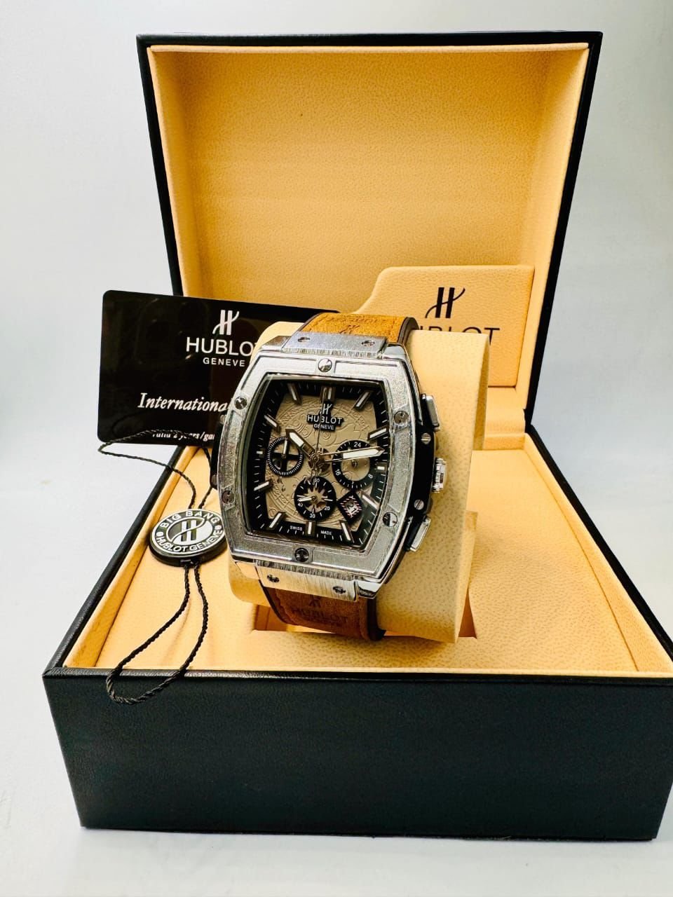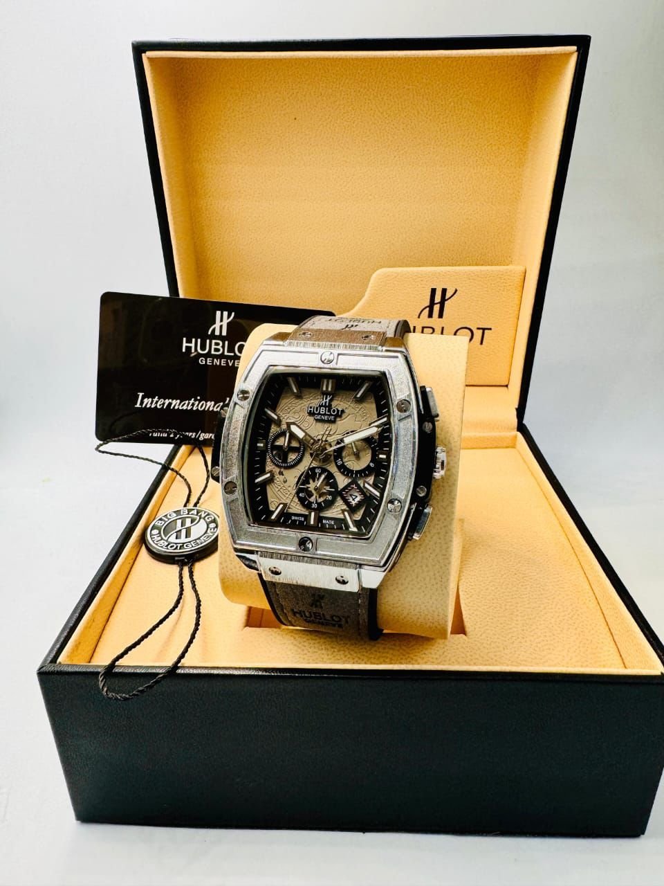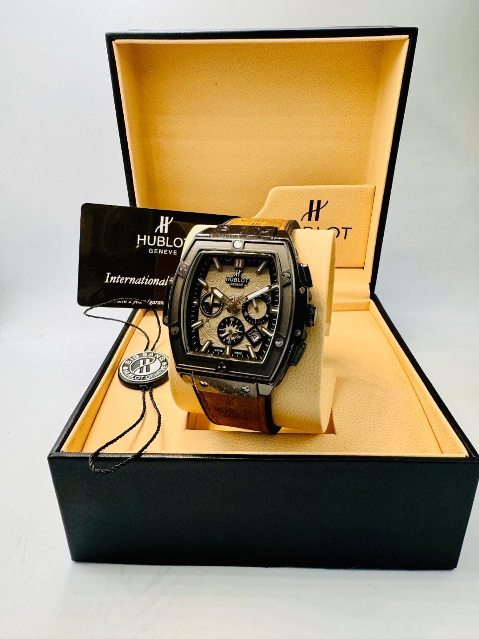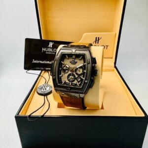 Introducing the HUBLOT Spirit of Big Bang – where disruptive architecture meets haute horlogerie in a timepiece that defies convention. Encased in a bold, multi-component tonneau silhouette, this watch is a masterful fusion of titanium, ceramic, and sapphire, creating a dynamic presence that is unmistakably HUBLOT. At its heart, the iconic HUBLOT skeletonized chronograph movement is on full display through a smoked sapphire dial, a mesmerizing window into the precise, high-beat engineering within. Finished with the brand’s signature “H” skeletonized hands and a secured, articulated rubber strap, the Spirit of Big Bang is not just a watch—it is the ultimate statement of the “Art of Fusion.” Built for those who lead, create, and break the rules, it is the spirit of innovation, captured in super master quality.
