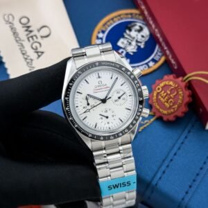 The Omega Speedmaster, famously known as the “Moonwatch,” is the first and only watch worn on the lunar surface. A chronograph legend with a timeless black dial, tachymeter bezel, and manual-winding Calibre 3861. Its robust construction and Hesalite crystal are born from a heritage of space exploration. Today, it continues as a symbol of adventure and human achievement.