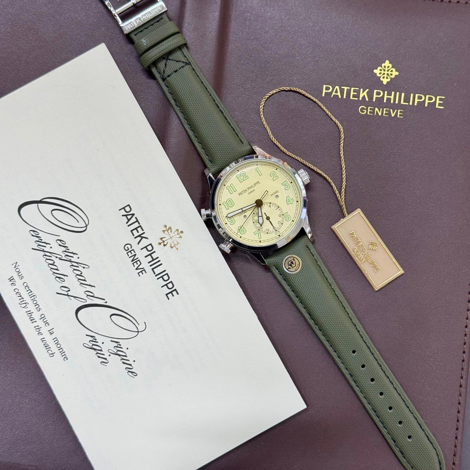 Introducing the Patek Philippe Calatrava Pilot Travel Time Ref. 5524G — a timepiece that redefines the genre of the pilot’s watch with the unwavering elegance and technical mastery unique to Patek Philippe. This is not merely an instrument for measuring hours; it is a complex, wearable engine designed for the global citizen, the executive whose office spans continents.