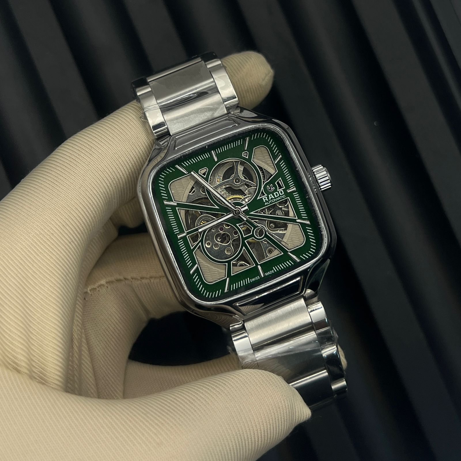 Embracing a contemporary square silhouette, the case is sculpted from Rado’s signature plasma high-tech ceramic. This advanced material is phenomenally scratch-resistant, ensuring the watch’s pristine appearance for years to come. It is exceptionally lightweight and hypoallergenic, offering a comfort on the wrist that must be felt to be believed. The polished finish captures and plays with light, giving the watch a distinctive, ever-changing luminescence.