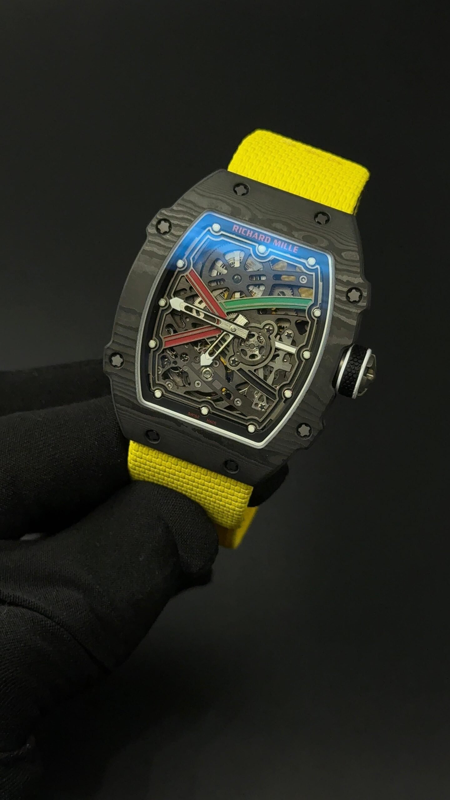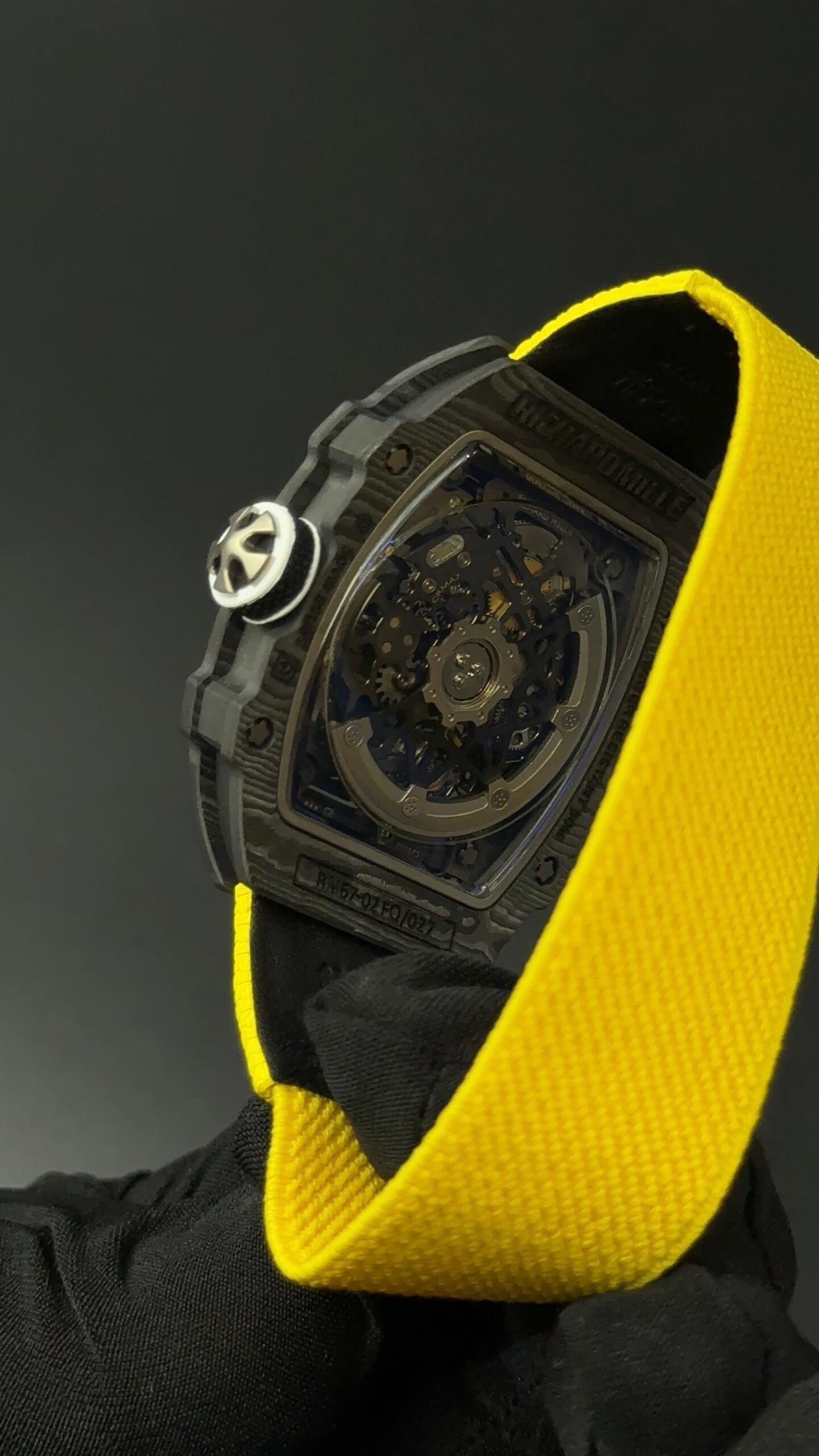 RICHARD MILLE RM 67-02 EXTRA FLAT UAE EDITION CARBON WITH YELLOW STRAP | New | SWISS MOVMENT