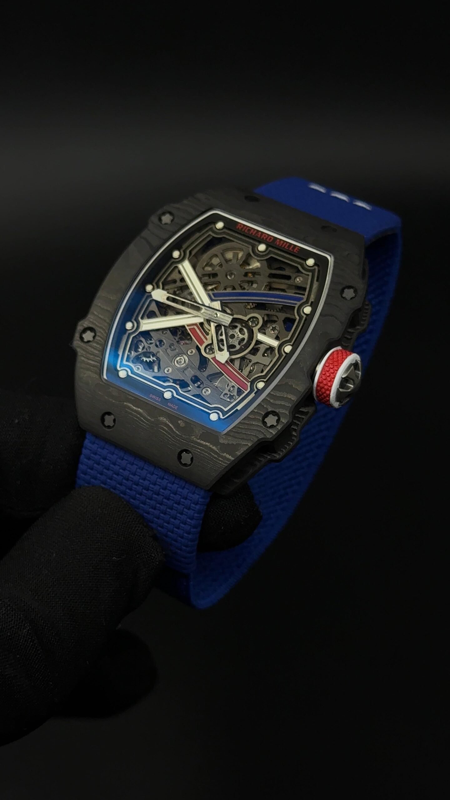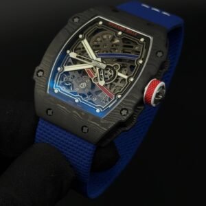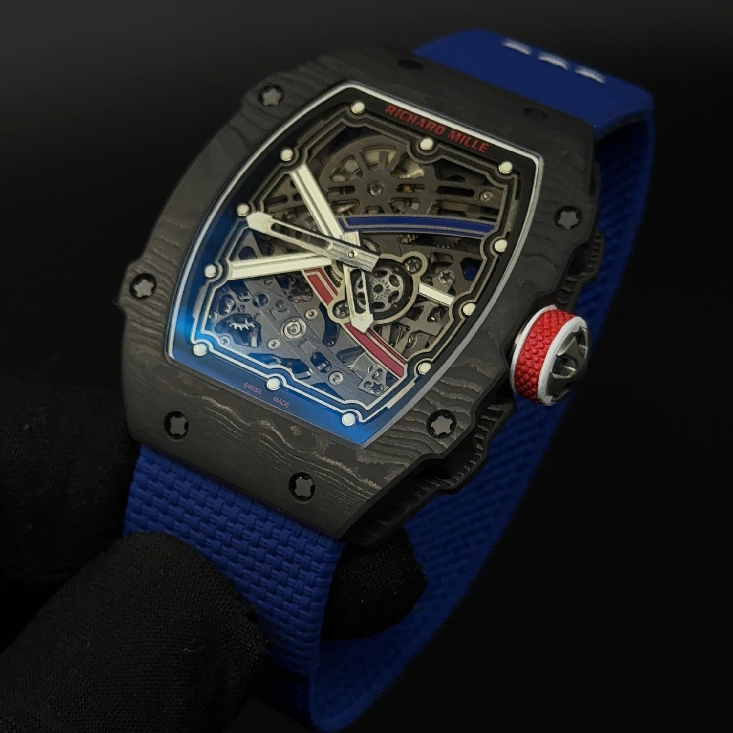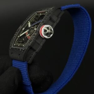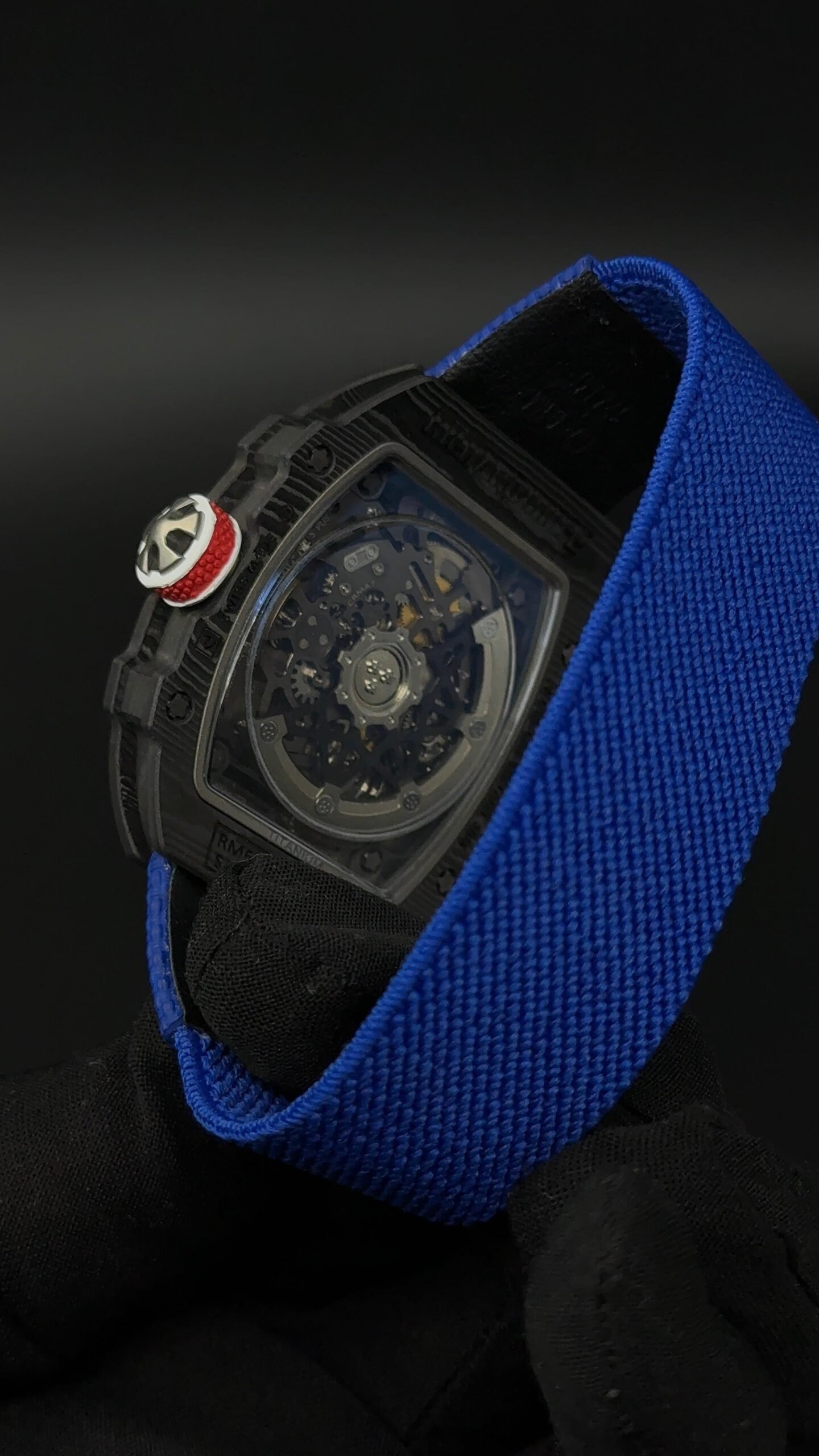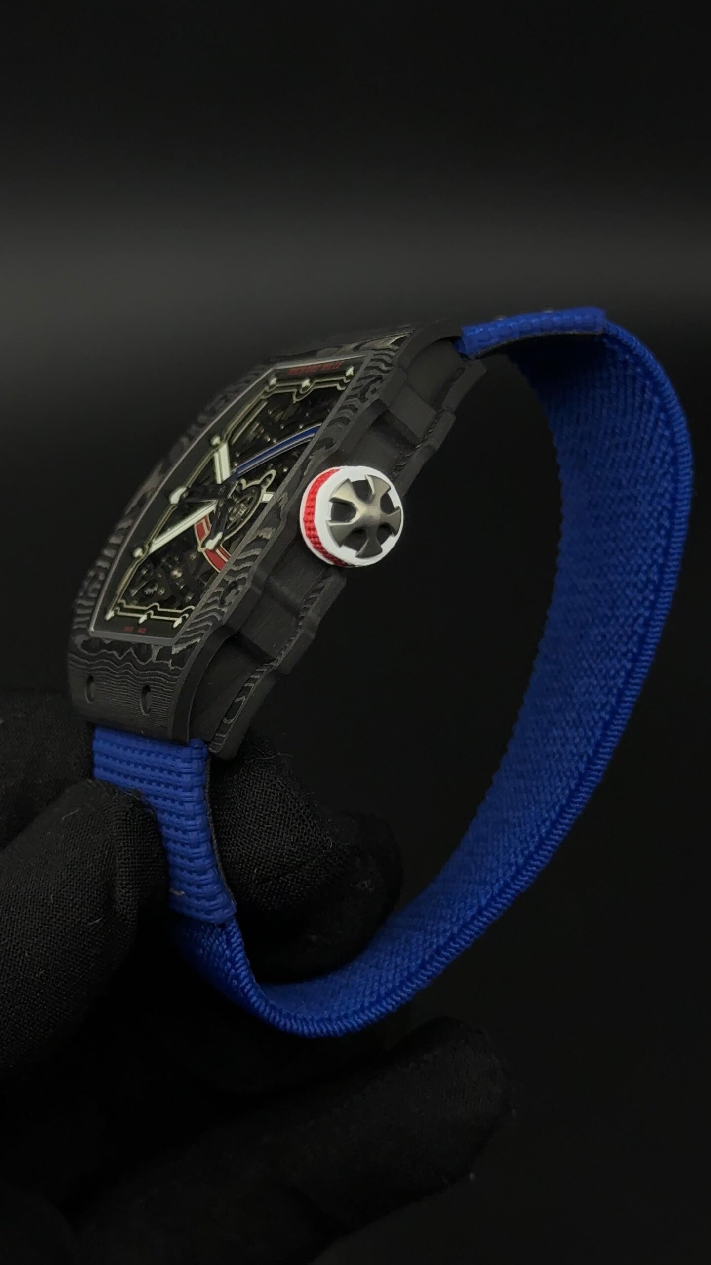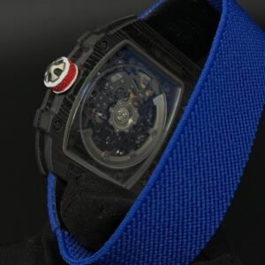 RICHARD MILLE RM67-02 _sebastien _ EXTRA FLAT REPLICA WATCH BLACK CARBON WITH BLUE STRAP SWISS MOVEMENT