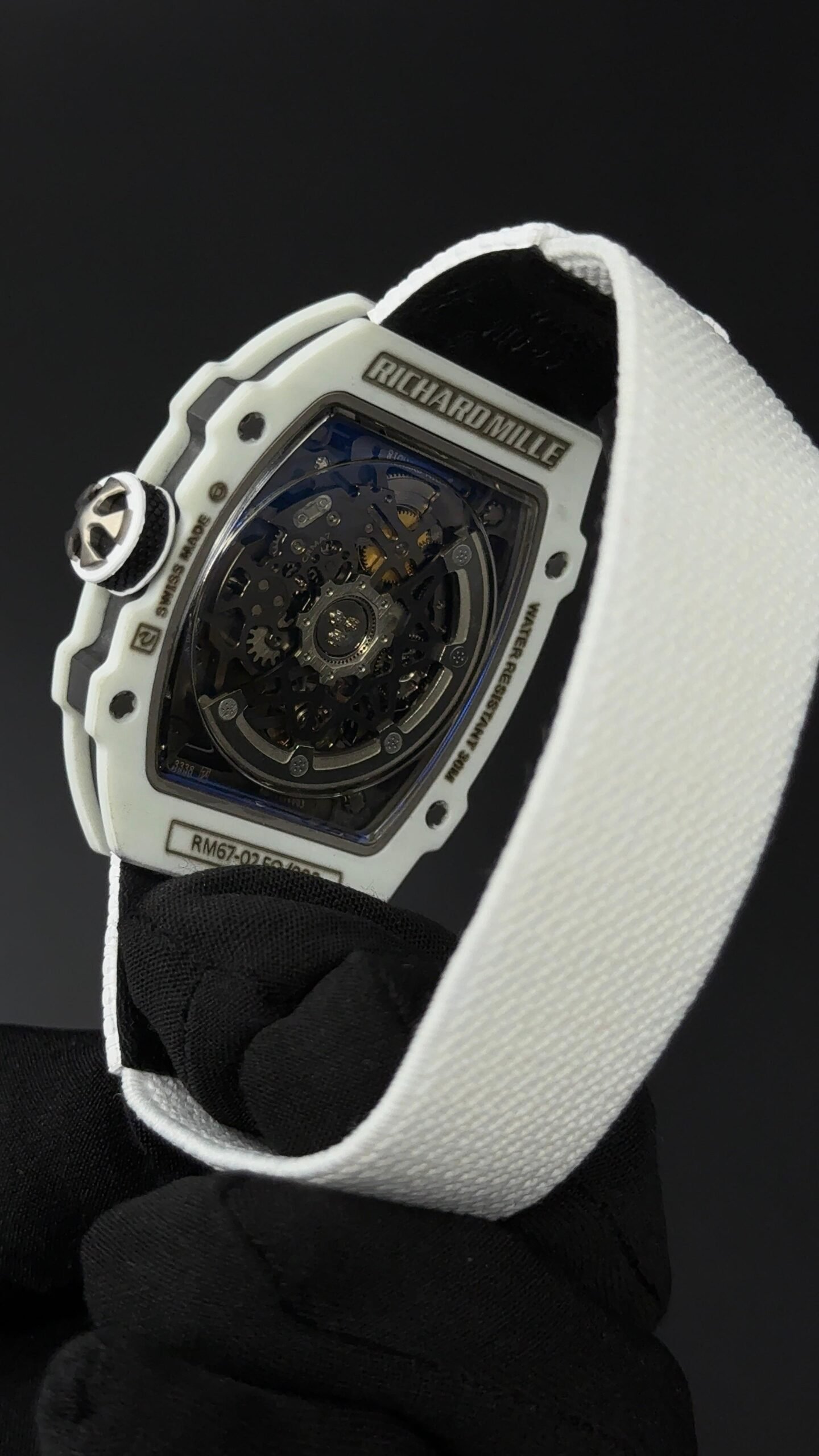 RICHARD MILLE RM67-02 UAE edition EXTRA FLAT WATCH WHITE CERAMIC WITH WHITE STRAP SWISS MOVEMENT
