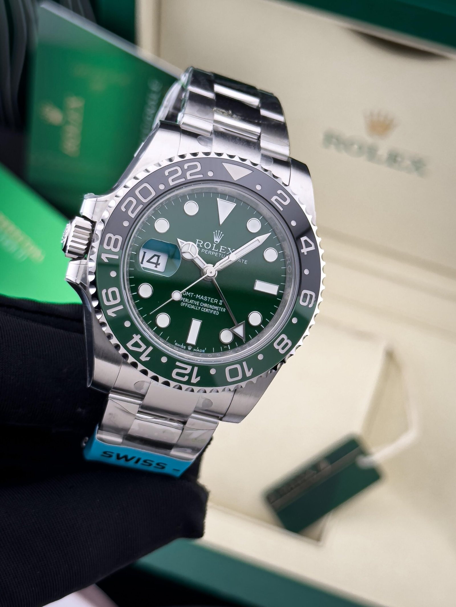 Finished with an Oysterlock bracelet and folding clasp, this GMT-Master II Sprite combines rugged reliability with refined aesthetics. Whether for professional use or luxury collection, this super master quality replica captures the essence of Rolex innovation and prestige.