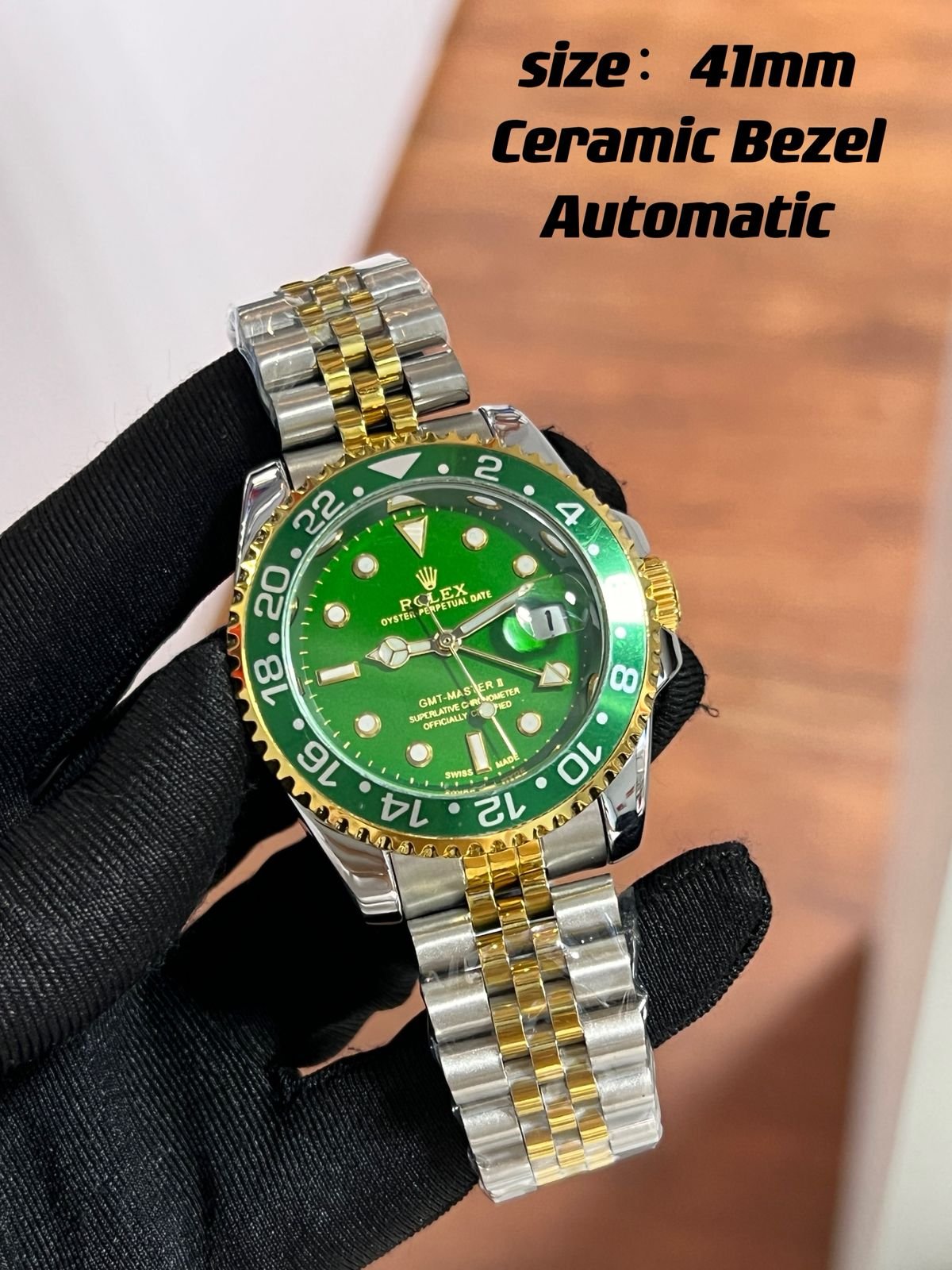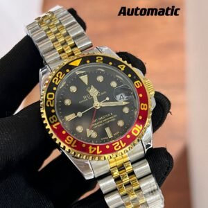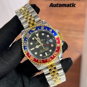 TheROLEX GMT Master watch” represents the pinnacle of luxury watchmaking, engineered for global travelers and watch aficionados. Featuring a robust 40mm stainless steel case, scratch-resistant ceramic (Cerachrom) two-tone bezel, and a flawless automatic movement, this timepiece delivers exceptional accuracy and reliability. Its iconic design includes a sophisticated black dial with luminescent markers, a date window at 3 o’clock, and the ability to track two time zones simultaneously via the additional 24-hour hand.