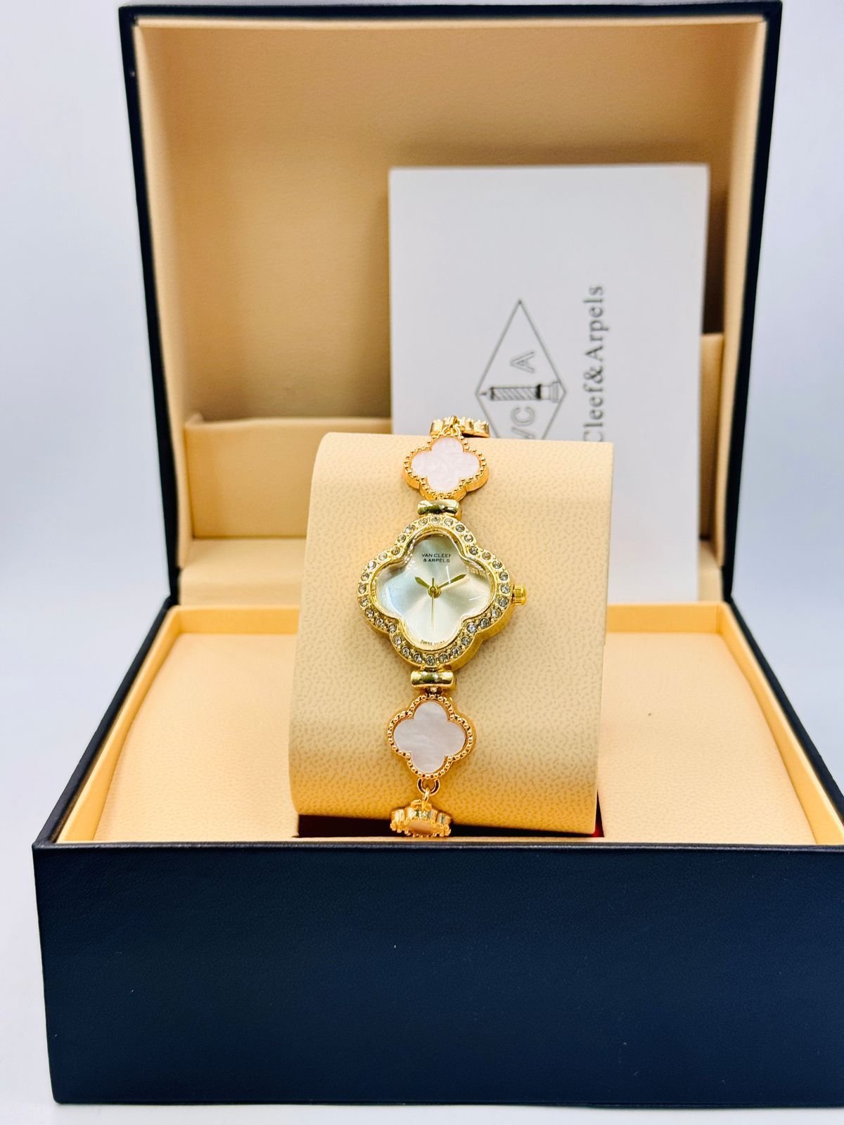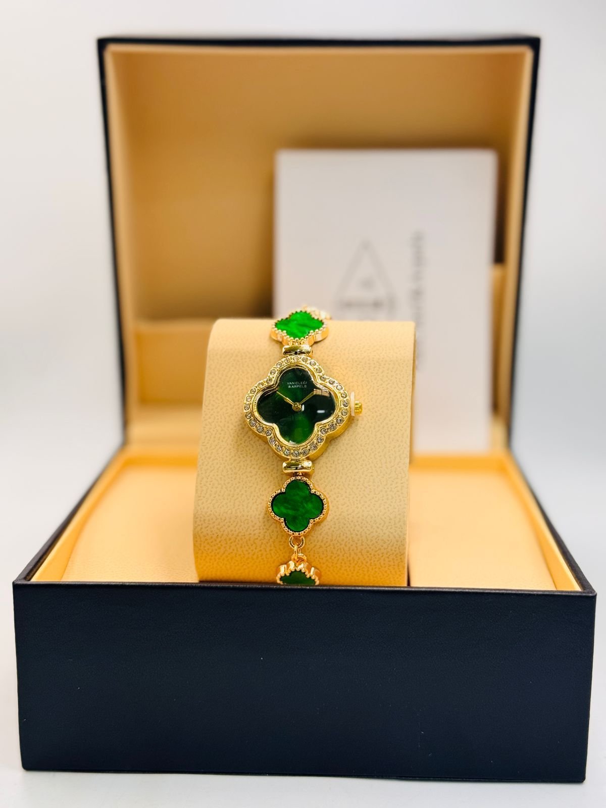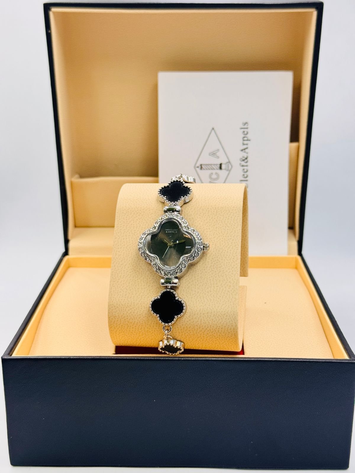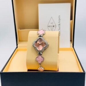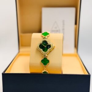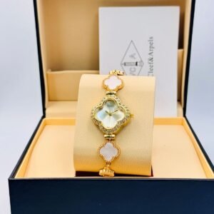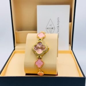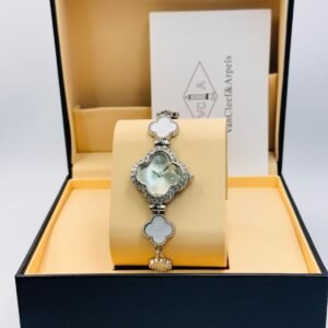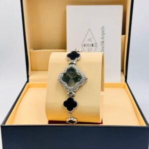 Crafted with the meticulous precision and artistic finesse that defines the House of Van Cleef & Arpels Four-Leaf Clover Motif Watch, this exquisite timepiece transcends mere functionality to become a wearable talisman. At its heart lies the iconic Four-Leaf Clover motif, a symbol of luck and timeless elegance, masterfully rendered in a dazzling display of gem-setting. Each leaf, meticulously carved and set with brilliant-cut diamonds (or specified gemstones), captures and reflects light with every subtle movement. The delicate case, forged from precious white gold or rose gold, embraces the wrist with unparalleled comfort and sophistication. Nestled within the floral embrace, a pristine mother-of-pearl or guilloché dial provides a serene backdrop for refined dauphine hands. More than an instrument of time, this watch is a piece of haute joaillerie—a secret garden of fortune and beauty on your wrist, representing the pinnacle of master craftsmanship and poetic design for which Van Cleef & Arpels is revered.