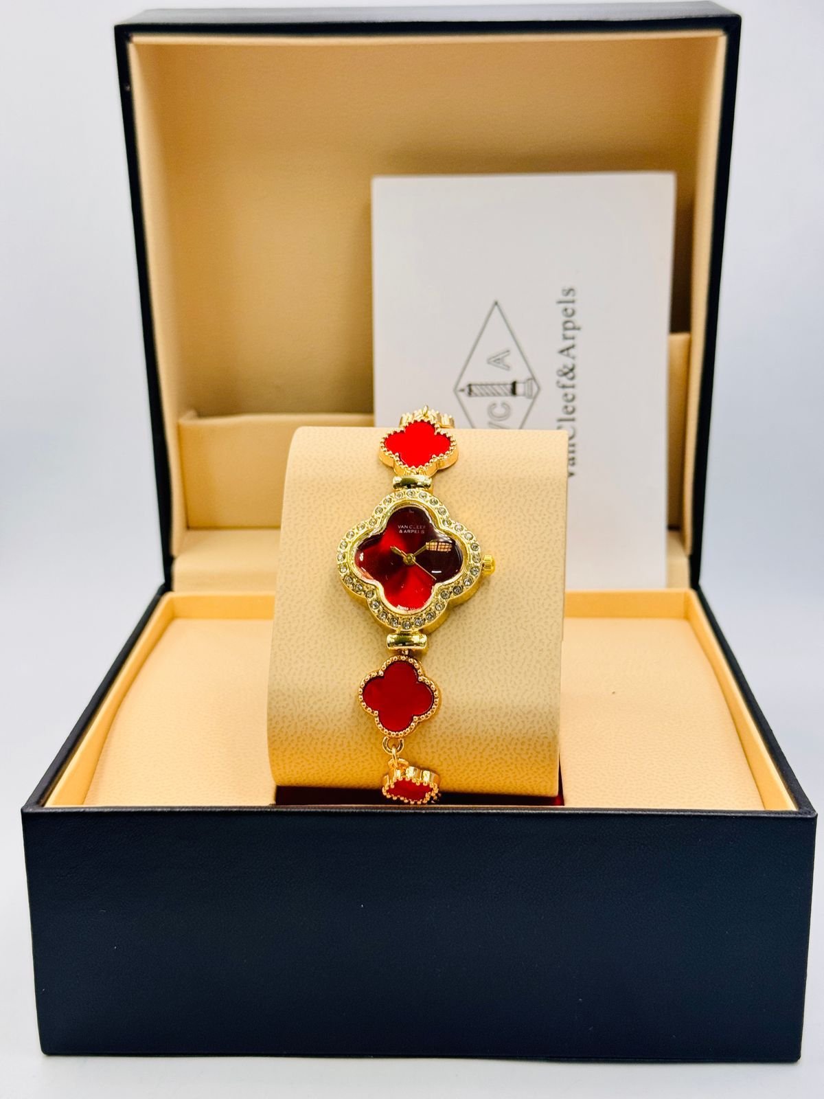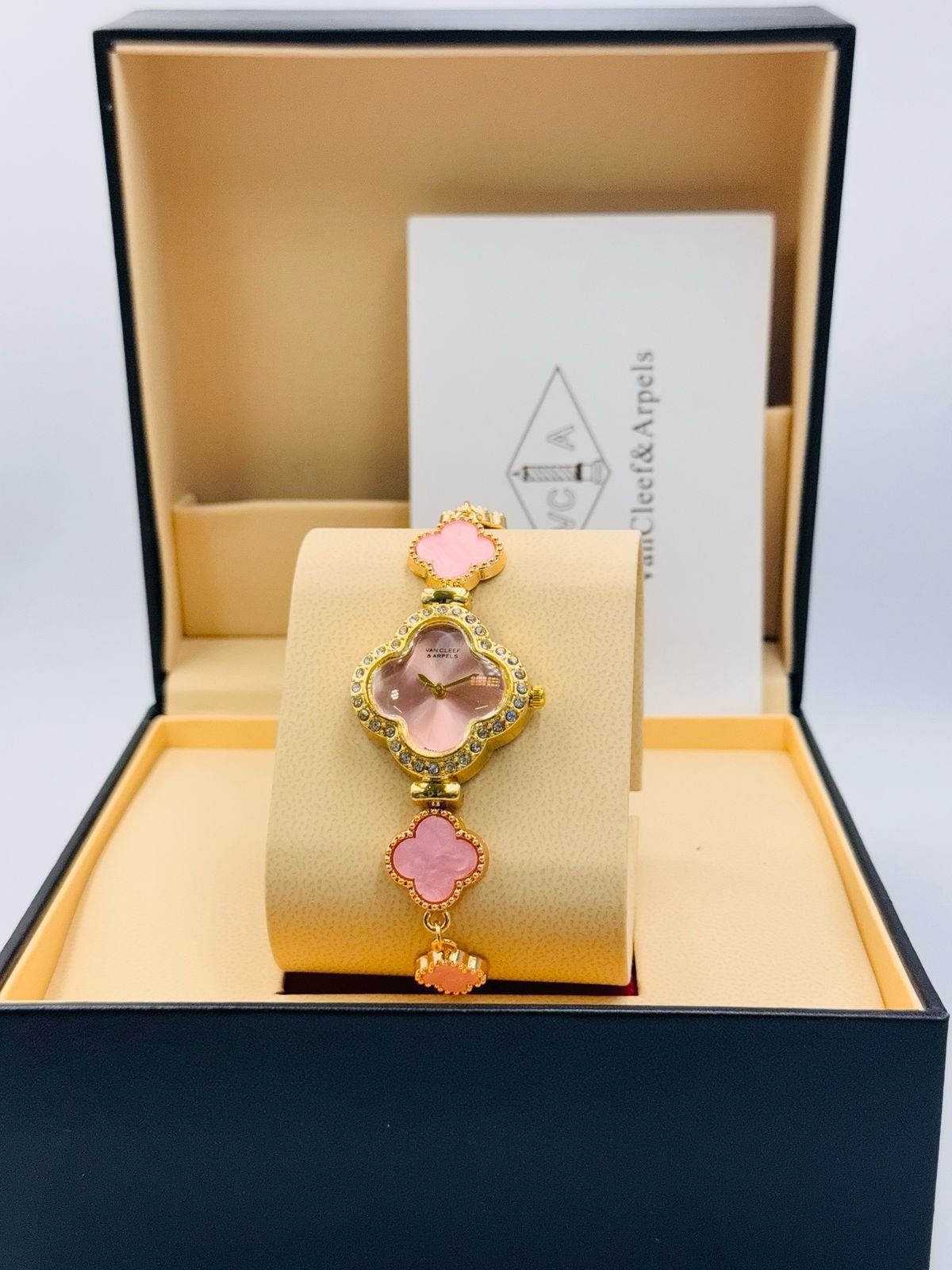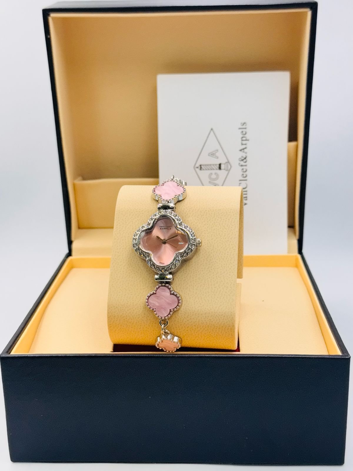 Crafted with the meticulous precision and artistic finesse that defines the House of Van Cleef & Arpels Four-Leaf Clover Motif Watch, this exquisite timepiece transcends mere functionality to become a wearable talisman. At its heart lies the iconic Four-Leaf Clover motif, a symbol of luck and timeless elegance, masterfully rendered in a dazzling display of gem-setting. Each leaf, meticulously carved and set with brilliant-cut diamonds (or specified gemstones), captures and reflects light with every subtle movement. The delicate case, forged from precious white gold or rose gold, embraces the wrist with unparalleled comfort and sophistication. Nestled within the floral embrace, a pristine mother-of-pearl or guilloché dial provides a serene backdrop for refined dauphine hands. More than an instrument of time, this watch is a piece of haute joaillerie—a secret garden of fortune and beauty on your wrist, representing the pinnacle of master craftsmanship and poetic design for which Van Cleef & Arpels is revered.